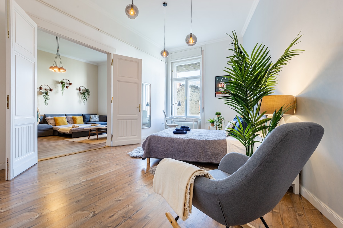 Welcome to this brand new spacious home in the center of Budapest! Our apartment is a new flat with a 106 sqm sized space. Designed by top interior designer team ensuring you get something unique during your stay. The apartment is in the middle of the city - you can reach everything on foot, restaurants, bars and main attractions are just around the corner. However, the apartment itself is still quiet for resting. The apartment is ideal for couples or friends looking for exploring Budapest!