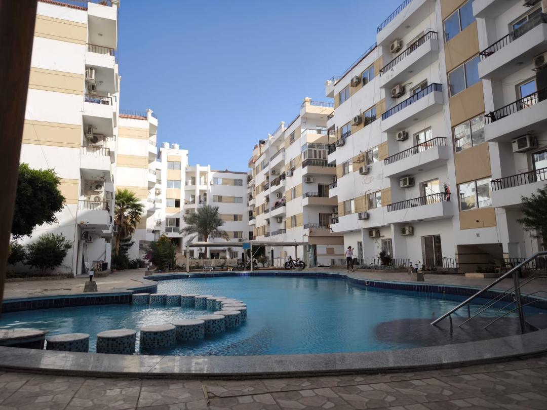 Amazing 1 bedroom apartment pool & sea views in the best place (The View Residence) in the heart of Hurghada in Old Sheraton street. Enjoy 3 pools and private beach. 1 double bed in a room and 2 bed sofas in the living room, suitable for 2 adults + 2 children or 3 adults. washing machine-2 air-conditioners- Tv-Wifi-calm and clean-high privacy and securit-perfect place for vacation. Close to all:- cafes,supermarkets,bazaars,Hurghada Marine. You can go on foot anywhere you want.