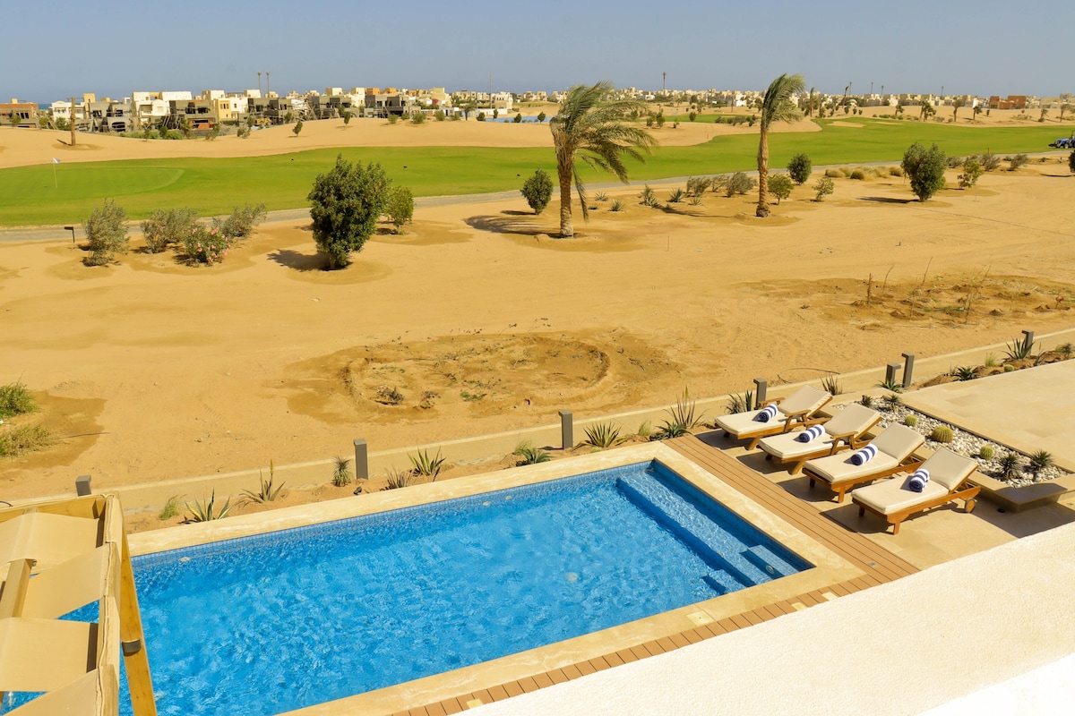 Welcome to our villa in the Nines, El Gouna. The property is a serene one-story sanctuary where luxury meets calm. Three elegant ensuite bedrooms and a guest toilet offer comfort and privacy for everyone. Step outside to a heated pool and a magnificent garden with sweeping golf course views. Relax, soak in the tranquility, and let the peaceful surroundings create unforgettable memories.