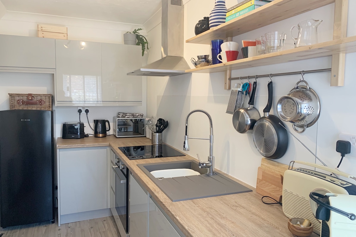 Beaches" is a contemporary bright studio offering light and airy accommodation with a feeling of tranquillity. With its own front door and patio doors which lead to a private courtyard. The location is perfect - Ideal if you wish to park your car and just walk - approx 5min walking distance from the village shops, beach, cafes, pubs, restaurants and village green. You can walk to Keyhaven harbour and the marshes, very popular with bird watchers. A ferry can be taken to Hurst Castle.