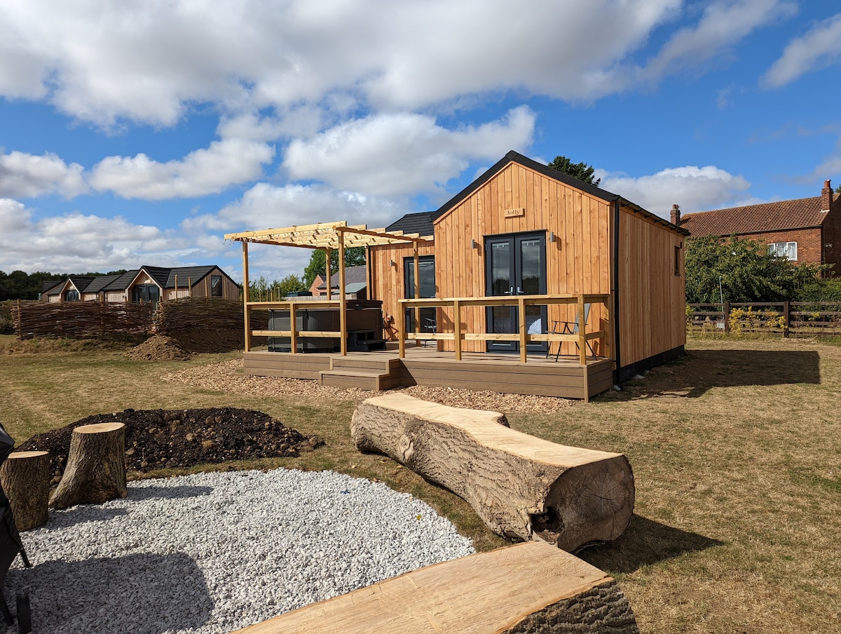 Take time out and relax in this calm, stylish, rural space. Enjoy spending time in the luxury setting, surrounded by farmland and nice views with your home amenities. Take in the views from your super king bed, large freestanding bath or the Juliet balcony. Relax in the large living area watching your favourite films on the 75inch smart TV, WIFI and surround sound. You have a kitchen that is equipped with electric fan cooker and 2 hobs to cook your meals and a dinning table to eat them at.