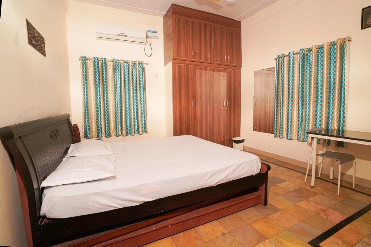 The property is situated in a prime area, just a short distance from the Metro station, restaurants, and shopping malls. This spacious studio flat offers tranquil rooms and is conveniently close to major tourist attractions, including Tank Bund, Birla Mandir, Hussain Sagar Lake, Durgam Cheruvu, the Rope Bridge, and Salar Jung Museum. With easy access to cabs, auto-rickshaws, and bike rentals, exploring the city is a breeze, as we are located in the heart of it all.