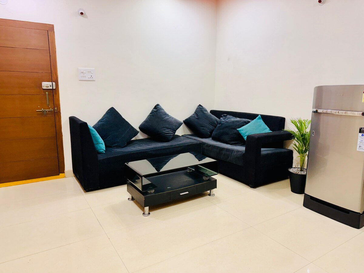 Stay in a modern 1BHK serviced apartment near Hitech City. Just minutes from IT hubs, Gachibowli, Madhapur & the Financial District. Enjoy a cozy living room with WiFi & Smart TV, a fully equipped kitchenette, a comfortable bedroom with premium linens, and a clean bathroom with hot water. Ideal for business travelers, families, or long stays, offering the comfort of home with hotel-like service.