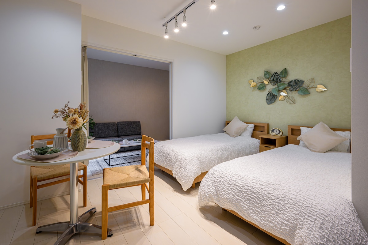 The room is a 7-minute direct train ride from Osaka (Hanshin Umeda Station) to the nearest station, Hanshin Himejima Station. From there, it is a flat 4-minute walk to the room, making it easy to reach. In 2024, we fully renovated this apartment unit into a Japanese-modern two-bedroom room, where you can enjoy a comfortable time in a calm atmosphere. It is conveniently located for sightseeing to areas such as Osaka Minami, USJ, Osaka Castle, Kyoto, and Kobe.