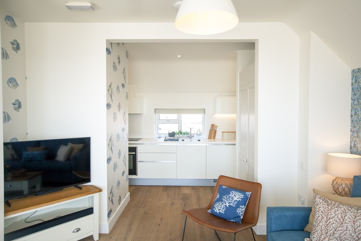 Our top floor apartment is situated right on the seafront. Triple windows offer uninterrupted views of the sea. Take a stroll along Hythe's beautiful beach, or a short wander to the High Street and soak up the cafe culture. Relax in the lounge and take in the sea views or prepare a delicious meal in the modern and fully equipped kitchen. The much-loved farmhouse table comfortably sits 6. Fast wifi and virgin TV, a large collection of DVD titles.
