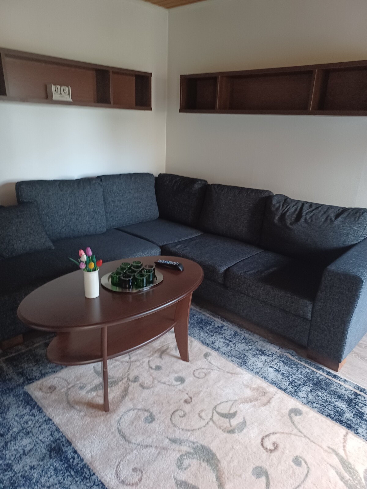Enjoy a stylish experience at this centrally-located place in heart of Hyvinkää! Peaceful apartment on 2nd floor with view to city center mall, with scandinavian look and feel, modern kitchen and bathroom have all you need. Bedroom with queen-size bed and big closet, and living room with office area, smart-tv and sofa that turns to comfortable bed. Free parking included. Located in center of Hyvinkää, 5-min walk to railway station, 2-min walk to shopping center, restaurants, bars etc