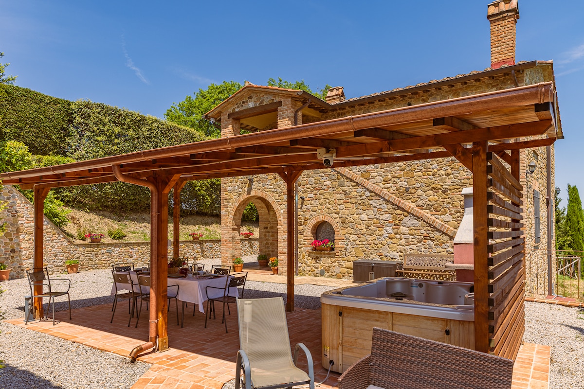 Modern villa with panoramic view in Montepulciano, a few steps from San Biagio. The villa is lovingly furnished and equipped with all comforts for a pleasant holiday. Enjoy breathtaking views of the surrounding countryside from the terrace, or relax in the two spacious gardens at your disposal. You will also have at your disposal a large kitchen to dabble in the magnificent art of cooking, something much loved by us Italians!!! Also available: Free Wi-fi Self check-in Reserved car parking