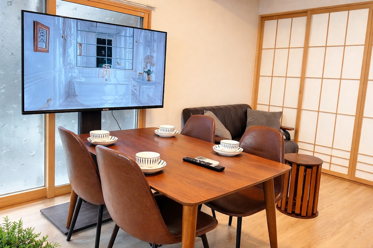 Rakuten STAY VILLA Kinugawa Riverside: 16 riverside villas, steps from the station. Spacious (100+ sq m) suites for groups & families. Private onsen, BBQ terrace, & sauna. Stream your favorites on our massive 75-inch TVs! Easy, contactless check-in. A luxurious escape awaits! Features: ・Private Natural Onsen ・Terrace BBQ Facilities ・Sauna (Low Temp, 2-Person) ・High-Performance 75-inch TV ・Contactless Check-In