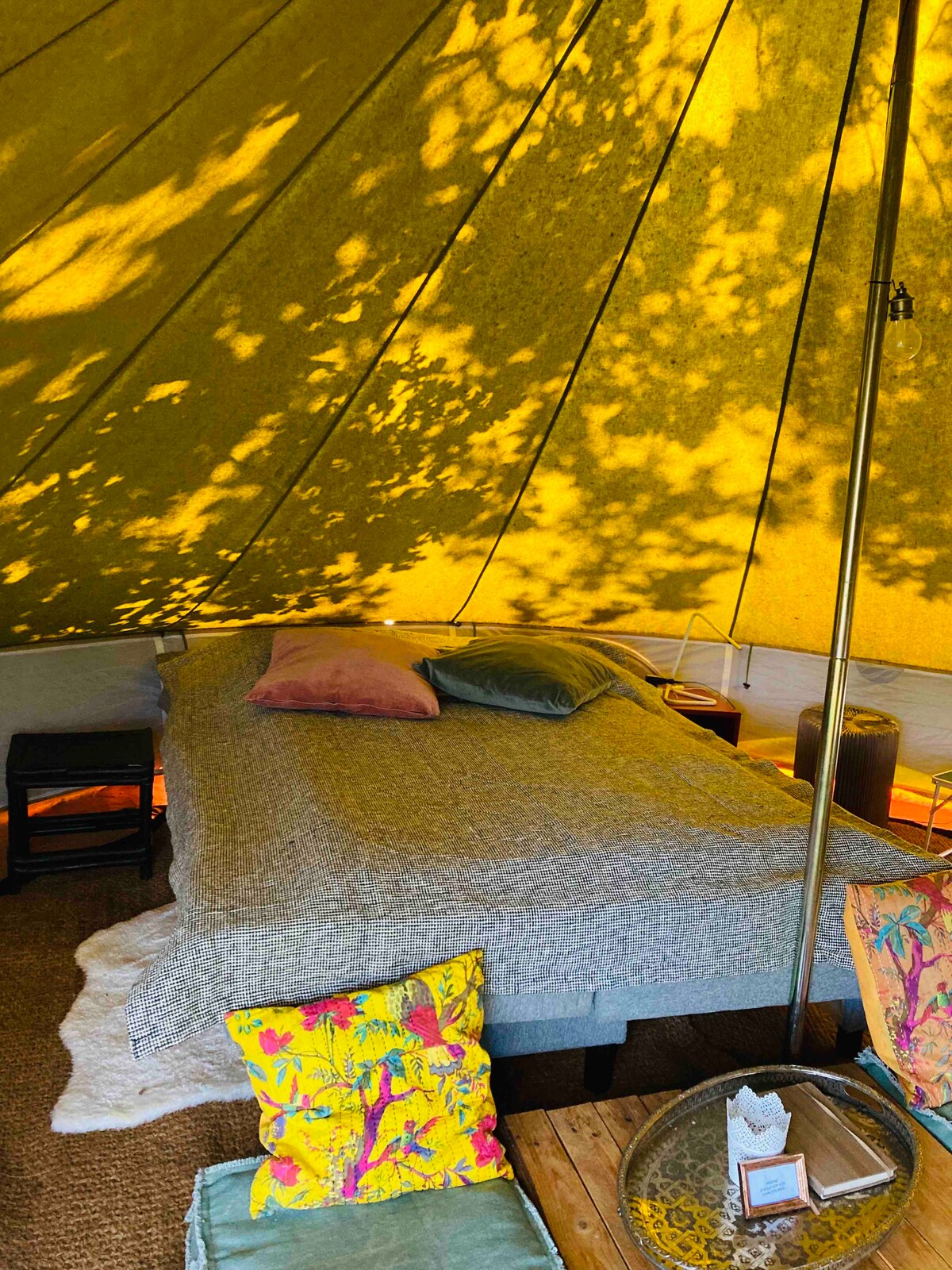 Romantic Bell tent in place with lots of privacy