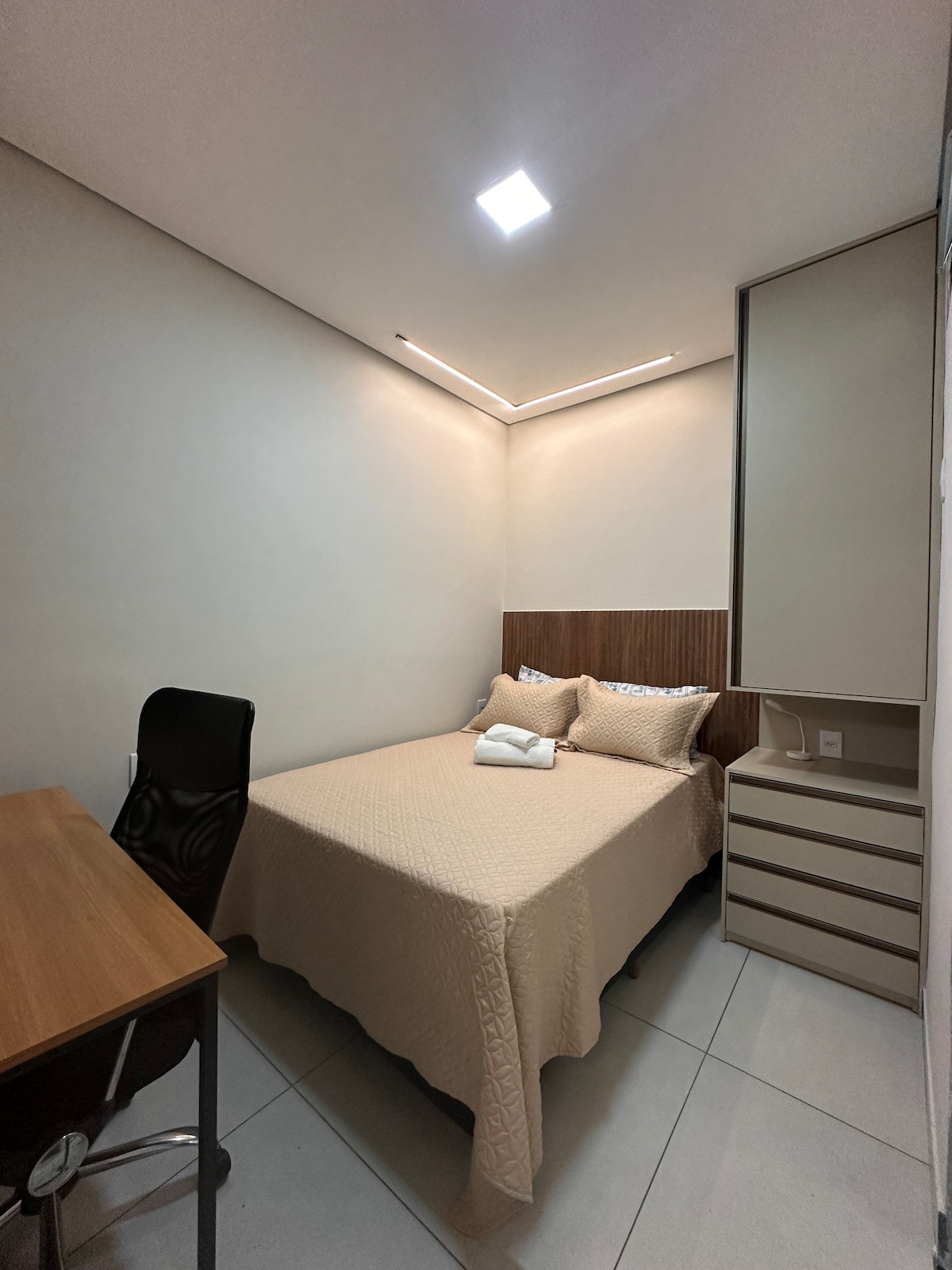 Márcio and Olindina are the hosts. Air-conditioning! Unique experience in an amazing loft with a balcony overlooking the sunset. Inside, it's like a cottage. It doesn't even look like you're in the city! You'll have a 32" smart TV and 500 Mbps Wi-Fi. Check-in: after 3 p.m. Check-out: by noon. Includes exclusive parking for guests. If the guest prefers, by prior arrangement, they can self-check-in. The key is stored in a small safe that the guest can open with a code.