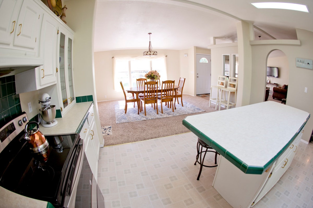Country quiet gem - take a break from the busy and relax in a spacious home all to yourself with beautiful views of pastures and the Emmett foothills. The ETownHouse Airbnb is less than one-mile from the heart of Emmett and the rodeo fairgrounds. It has a open floor plan (3 bedroom, 2 bath - 1,800 Sq ft) and a large kitchen with skylights. The back porch is a covered patio w/ gorgeous views. This home shares a split driveway. We also have a portable pack and play and high chair for littles.