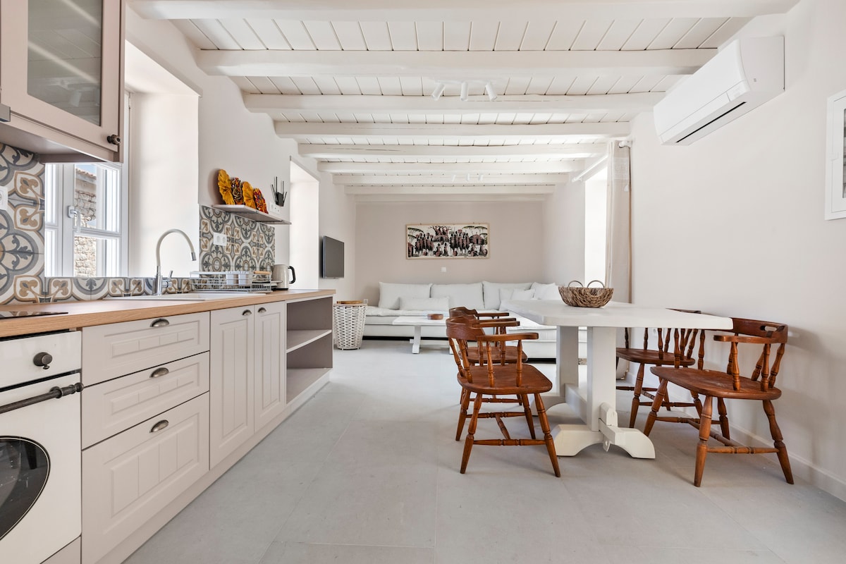 Alleyway house is a traditional and fully renovated Hydrian house,based on the architecture and the high quality of the island. Situated in the quiet alleys and just 100 meters from the port of Hydra,Alleyway house offers comfort and easy access. It also enables the visitor to meet with the rich lifestyle of the port of Hydra,where someone finds the cafeterias,restaurants,bars and all the shops of the island. Alleyway house has full kitchen equipment to prepare all the meals of the day.