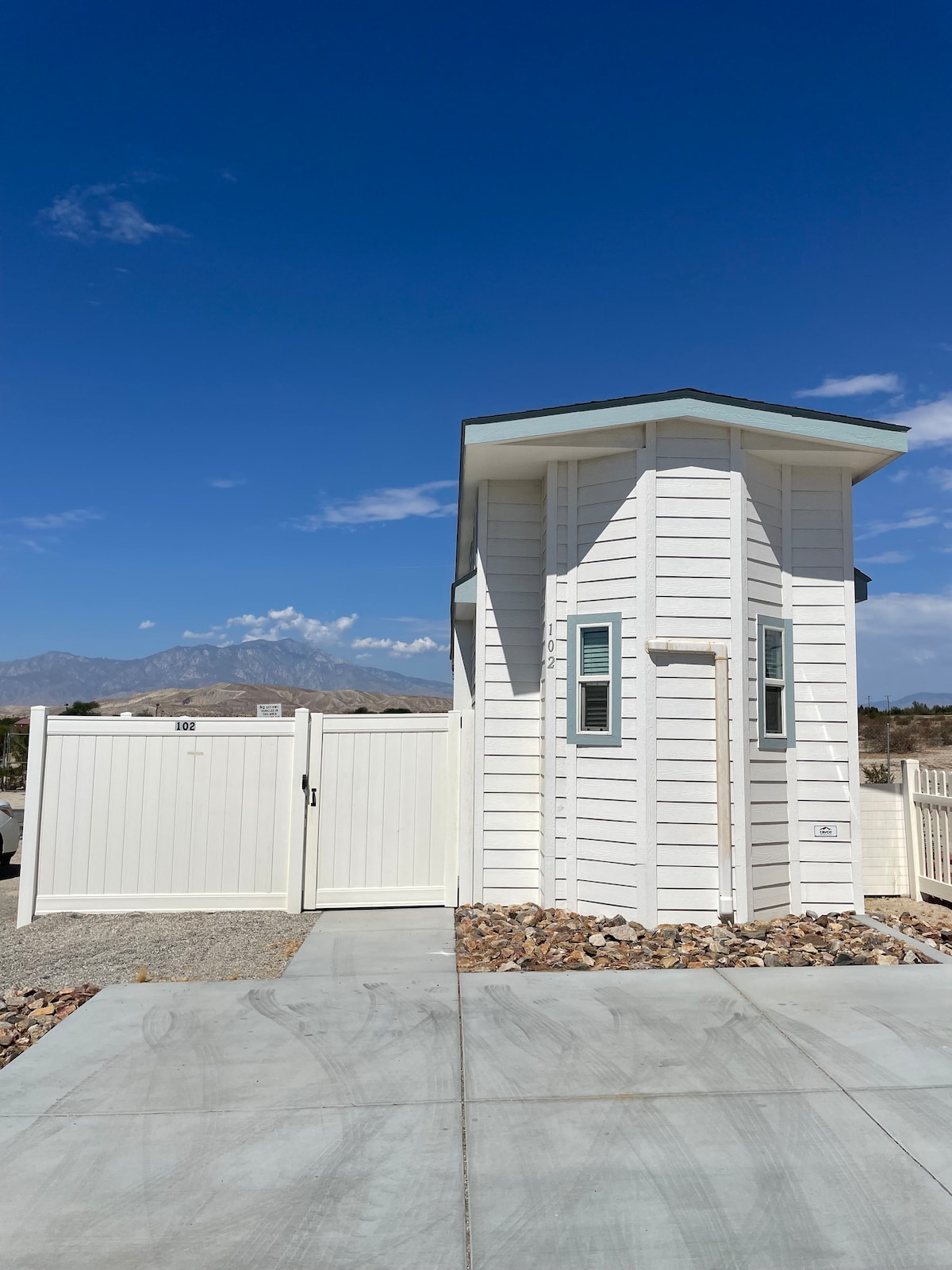 Live it up, and take it easy at this unique and tranquil getaway! Located in a remote hot springs gated resort, this is a tiny house/RV, manufactured home community. Relax in healing mineral pools and hot tubs, just two blocks away! Enjoy all the resort's amenities. Hike nearby, or drive to Joshua Tree National Park. Explore Palm Springs, 25 miles away. Take an evening walk through this friendly community. And after a perfect day, watch ducks in the pond and sunsets on the mountains!