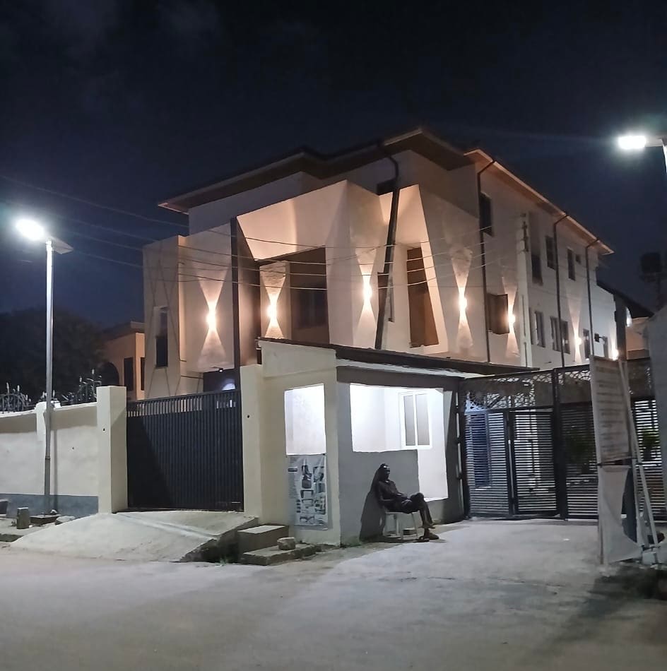 "New Kid on the Block" offers a serene, secure environment with 24-hour security. It features a fully equipped kitchen, all rooms ensuite with air conditioning, three smart TVs, and unlimited optic fiber Wi-Fi. An additional half-bathroom is available for guests. The property has 24-hour power, with air conditioning running on the national grid, and the living room's air conditioning can be powered by a generator or an inverter with 12-15 hours of backup.