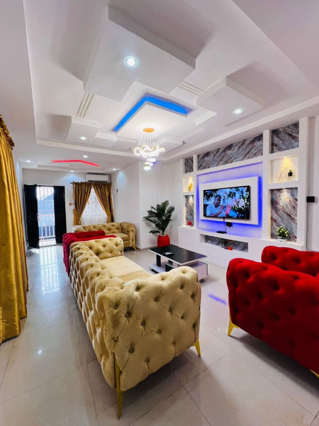 In this home, We’ve passionately created that perfect Indoor/Outdoor experience. It comes complete with a Pool, Gazebo, Laundry area and more. Inside is a living area with 65inch smart Tv and leather settees. Your bedrooms come ensuite with modern bathrooms and high water pressure. The kitchen comes with a heat extractor, and burners. Our WiFi is wired and Super fast. Power is 24/7. At your service is a Security guard and Porter.