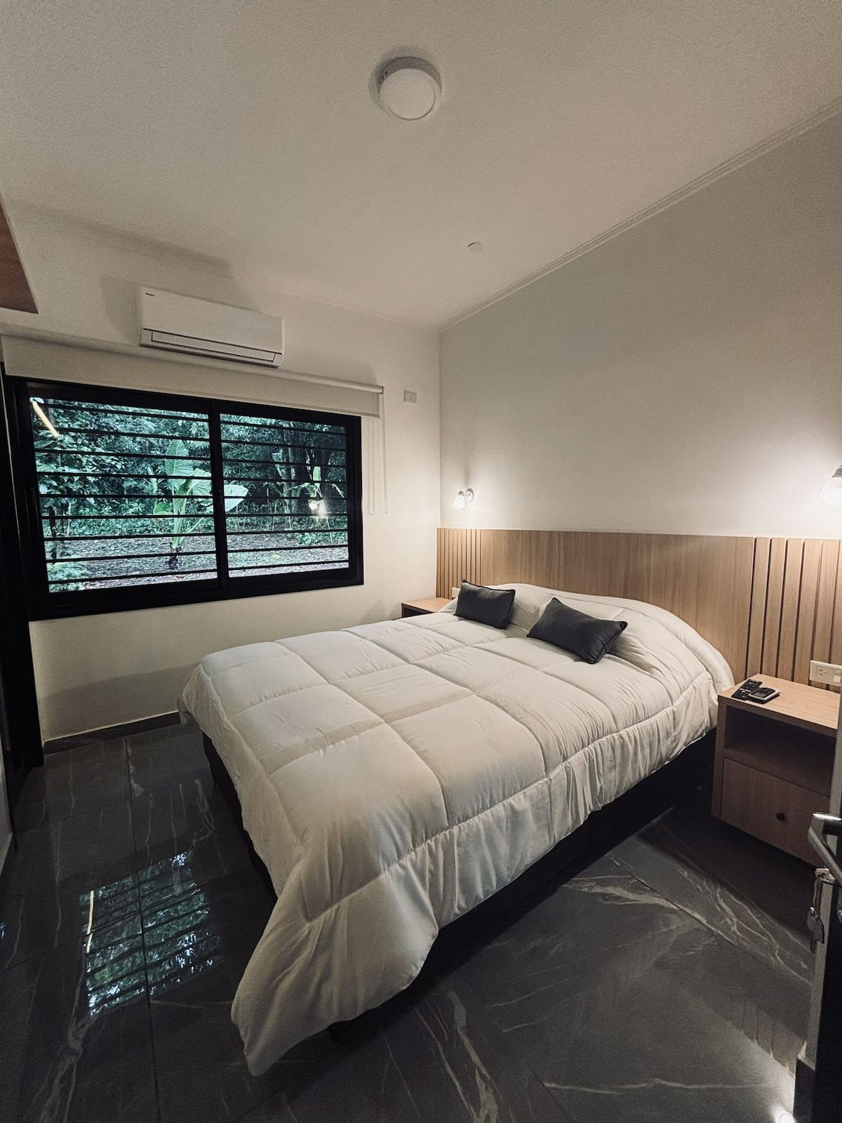 This apartment in Puerto Iguazú is the perfect balance between functionality and urban facilities and the serenity of the Iguazú Falls. Located in the heart of a quiet residential neighbourhood, it offers a superior accommodation experience by combining rest with an unbeatable strategic location. With all the necessary amenities and close to markets, bus stops to waterfalls and Brazil, as well as tourist places such as the three border landmark and the fair.