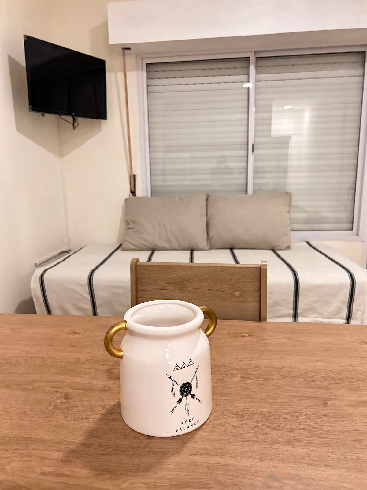 Discover the charm of Puerto Iguazú in our apartment for 3, located in a modern building in the heart of the city. Surrounded by restaurants, bars, cafes, and more, our space offers a unique urban experience. Ideal for couples or small groups, it has a cozy living room with sofa bed, balcony with grill, equipped kitchen, laundry room, a double room and full bathroom. With air conditioning in every room and pet permit, your stay will be unforgettable!
