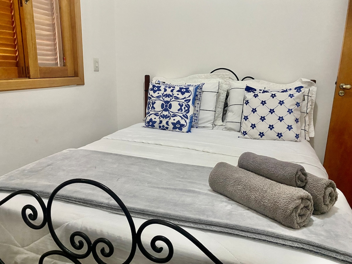 If you seek tranquility without giving up the fun and well-being, this is the right place! Enclosed ▪️ condominium with access to the dam; ▪️ Ideal for families and groups; Leisure ▪️ structures for children, playground, quadras; Outdoor ▪️ activities: fishing, hiking, hammock and kiosk at the edge of the dam, kayaking; ▪️ One suite (King) + 1 bedroom (standard double) + 1 bedroom with single sofa bed; Lawn ▪️ yard, barbecue and outdoor table Complete ▪️ kitchen; ▪️ Kayaking available.