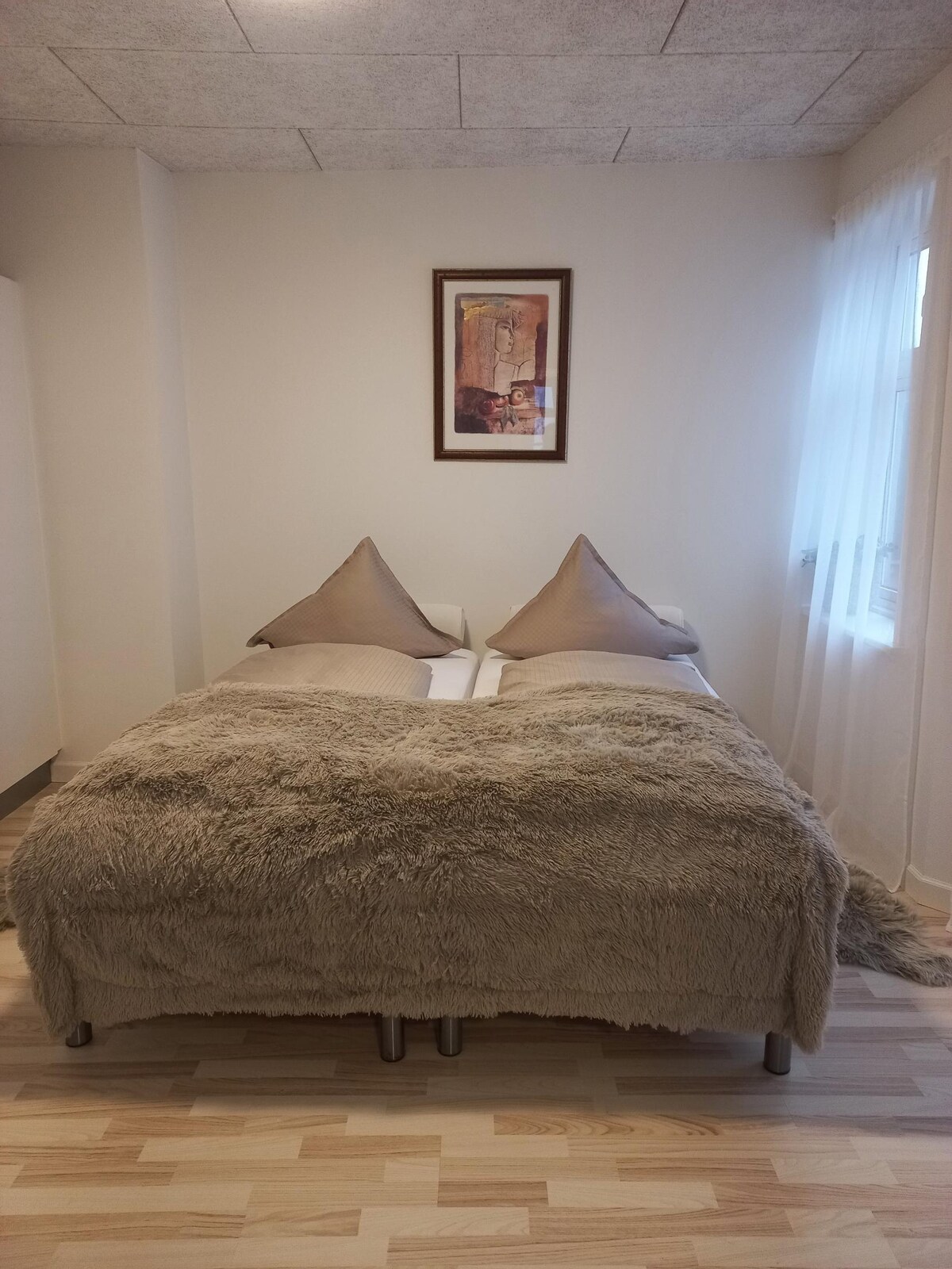 In this lovely luxury apartment of about 90 m2, you get a little extra for your money. Here is a large luxurious bathroom with wellness shower. I've made the beds and the towels are ready. In the kitchen, there is a dishwasher, oven and fridge/freezer, coffee maker and electric kettle. Bedroom, entrance, large living room and bedroom with two beds. The apartment has marble floors and underfloor heating and is located in the basement of the house. It is only 100 meters to Rema, 500 meters to the center of Ikast and 10 minutes by car to Herning.