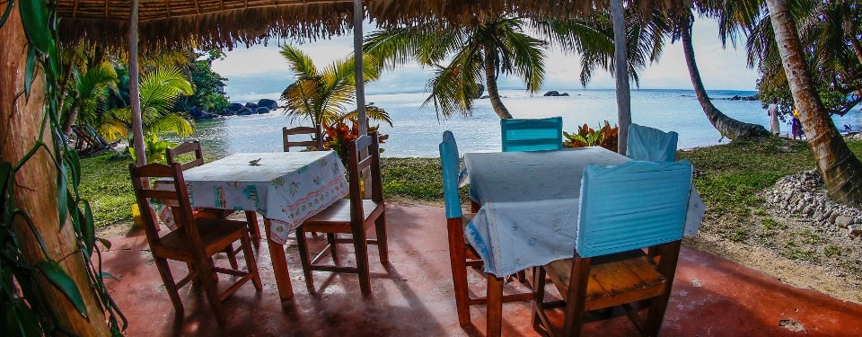 - Bungalow named POERANA with bedroom (140 cm bed), kitchenette, shower room and toilet (common to the rooms of POERANA, LE FARÉ, and VAHINÉ), solar electricity, running water, hot water, no fridge. - Family bungalow named LE FARÉ with 140 cm bed, 130 cm bed. - An elevated bedroom named VAHINÉ with a 90 cm bed and a 90 cm bunk bed. - Outdoor dining area. - Outdoor kitchen kiosk - Outdoor shower and toilet, no hot water Gas or charcoal for cooking at extra cost.