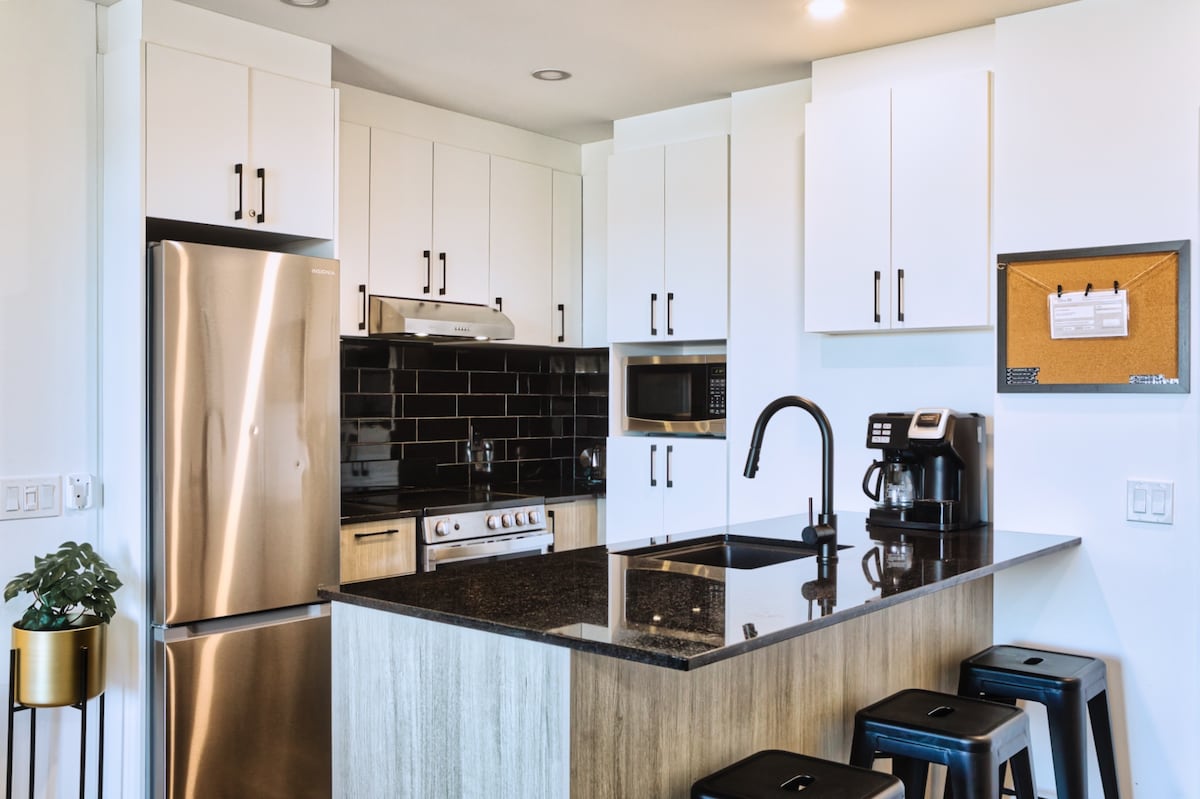 This modern condo (2022) is less than a 15-minute walk from Old Quebec. Enjoy the amenities of a hotel without neglecting the comfort of your home. It includes nearby parking, a swimming pool, a terrace, a gym, a fully equipped kitchen, and a washer and dryer. Its cozy bed will welcome you after your days of walking to visit the most popular tourist attractions or after your evenings at the many quality restaurants nearby.