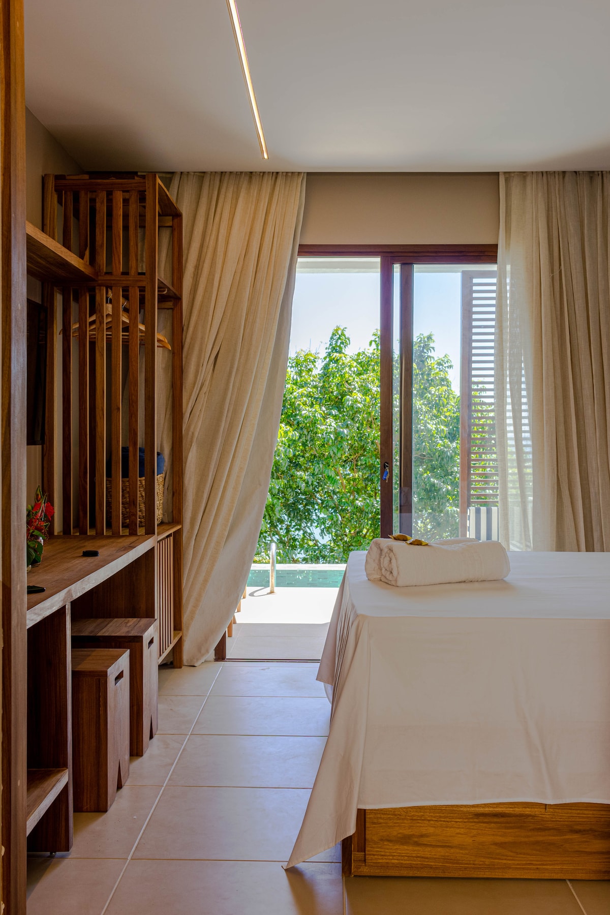 Sustainable Forest Bungalow with sea view near Morro de Sao Paulo Escape to this unique and tranquil hideaway located in the tropical forest of Gamboa. This elegant, distinctive bungalow is accessed via an elevated wooden path winding through the forest. Enjoy breakfast served in your bungalow. Immerse yourself in the surrounding nature. Perfect for those seeking relaxation and a touch of adventure.