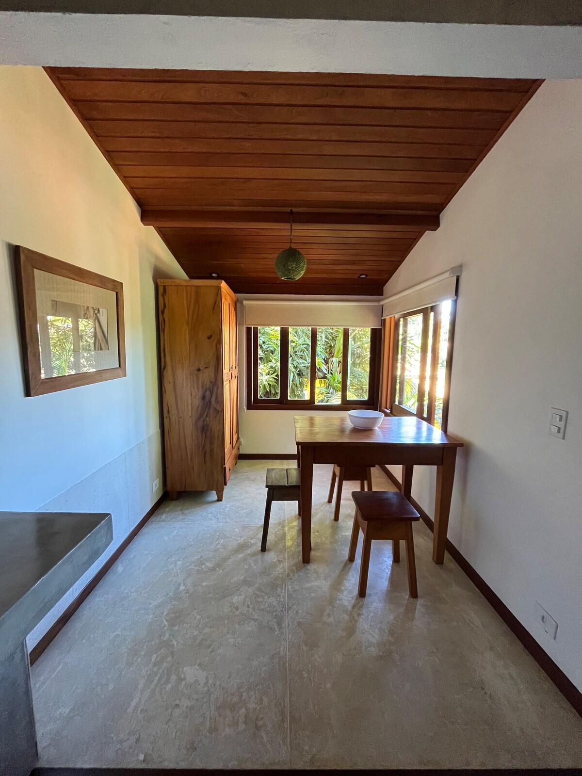 Close to the village and 200 meters from the paradisiacal beaches of Porto de Cima, it is the ideal place for those looking for tranquility, comfort and quality in their stay. It is located at the top of the hill overlooking the woods, so if you have any difficulty climbing stairs, we do not recommend staying with us, because even the loft is 90 steps. Fully equipped, balcony with hammock, full kitchen, bathroom with electric shower, air-conditioning, sofa bed, queen size bed, cable TV and safe.
