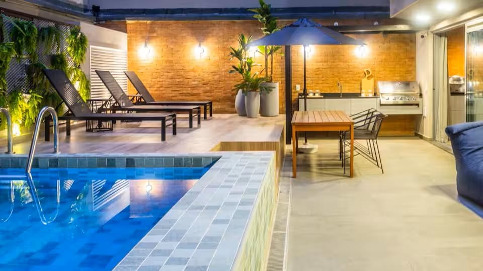 A spacious suite of guests in penthouse, with a wonderful view of Christ the Redeemer and Rodrigo de Freitas Lagoon. It has a large outdoor area with heated pool and waterfall, lavabo, steam room with shower, kitchen, barbecue, fridge, cooktop, microwave, Airfryer and kitchen utensils. The access to the suite is independent. The Suite is two steps from the Rodrigo de Freitas Lagoa bike path, 5 minutes walk from the Botanical Gardens, 10 min drive to Copacabana, Leblon and Ipanema beach.