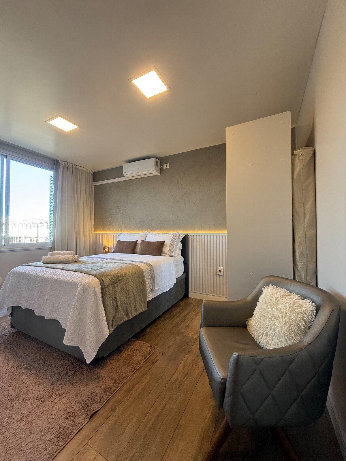 AP 1304 is very Cozy, New and well decorated, high floor with a view. Modern development, with complete infrastructure, located at the highest point of Porto Alegre with access to the main avenues, close to supermarket, pharmacies, restaurants and shopping. Accommodates up to 4 people, has 1 double bed, 2 single mattresses. We accept small/medium pets. We have a collapsible crib AT NO COST (request in the reservation) Covered garage is already included in the price
