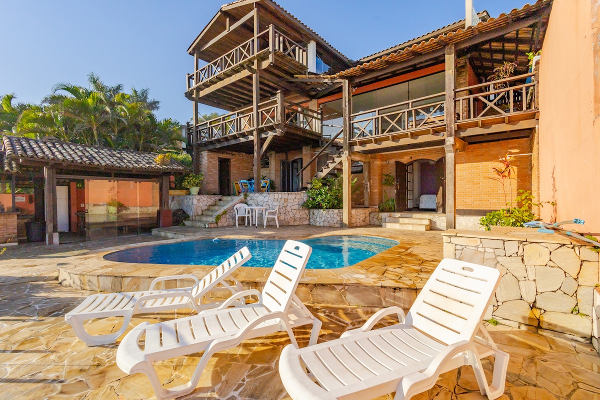 Enjoy all the comfort to relax in an infinity pool overlooking the sea and mountains, in front of Ilha das Cabras and with a breathtaking sunset. All en-suites overlook the sea, have air-conditioning and a large deck with a gourmet area with a barbecue grill, a wood-burning stove and a pizza oven. Easy access to Pedras Miúdas beach, a few minutes' walk away, where you can enjoy kayaking and diving. All this with the security of a gated community.