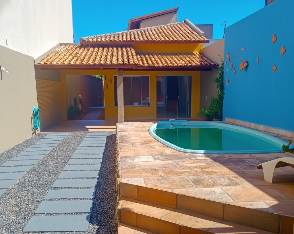 100 meters from the beach Beautiful pool with lighting BBQ Four bedrooms, one on the ground floor and the others on the upper floor Air-conditioned Rooms Covered four-car garage It accommodates up to 16 people, above this amount is negotiable. 100% Led Indoor Lighting Daily observation and singing of several birds of the wildlife such as Sabiá, Sibiti, Corrupião, Bem-ti-vi, Parakeets, Blue Sanhaço ,boi blood, etc.