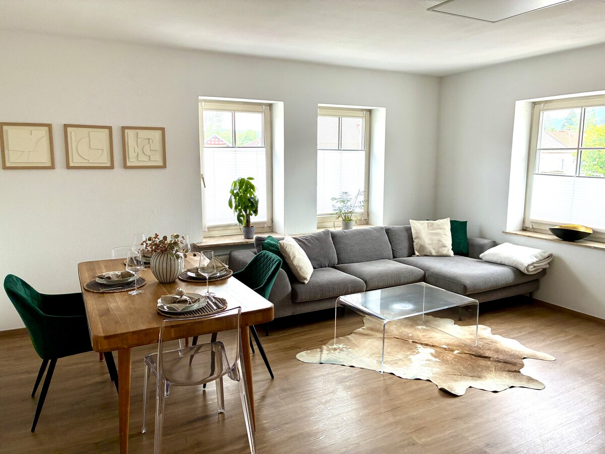 Enjoy your time out in this beautiful and cozy apartment with stunning views of the Grünten and the Allgäu mountains. The apartment is very quietly located, in the middle of the Upper Allgäu, with many ski resorts, cross-country ski trails, hiking trails, swimming lakes, racing bike routes and mountain bike trails at your doorstep. The apartment has underfloor heating, fast Wi-Fi, a sofa bed, is spacious with state-of-the-art amenities and parking. Pretzel and roll delivery on request.
