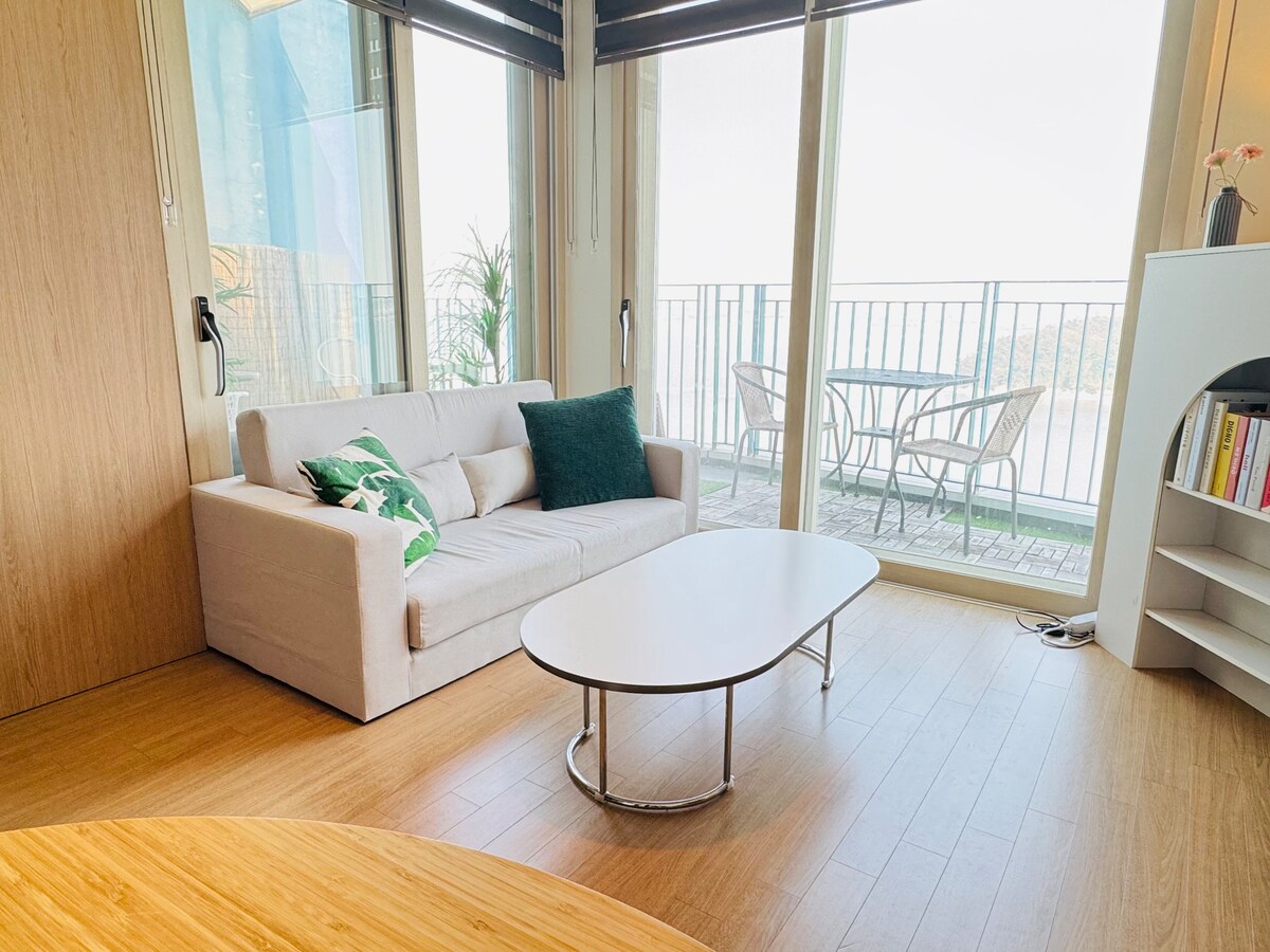It's a great place for family & friends to stay Penthouse is located on the 21st floor and has convenient access to the rooftop garden (there is a photo zone on the rooftop) Sunrise & sunset can be viewed through the window. Guests say it's a view restaurant & the best. This is the best view among the new city in the sky. Dog cafe on the 1st floor, restaurant on the 1st and 2nd floors There are local amenities such as a mart that can be reached on foot. It's double-storied. -1 king size luxury bed on the 1st floor -There are 2 super single mattresses on the 2nd floor. The 🛋sofa consists of 2 luxury full-length leather sofas for 4 people (wide enough to be used as a bed) and an additional mat It is equipped and can accommodate up to 8 people (Additional fees will be incurred for 7 or more people)