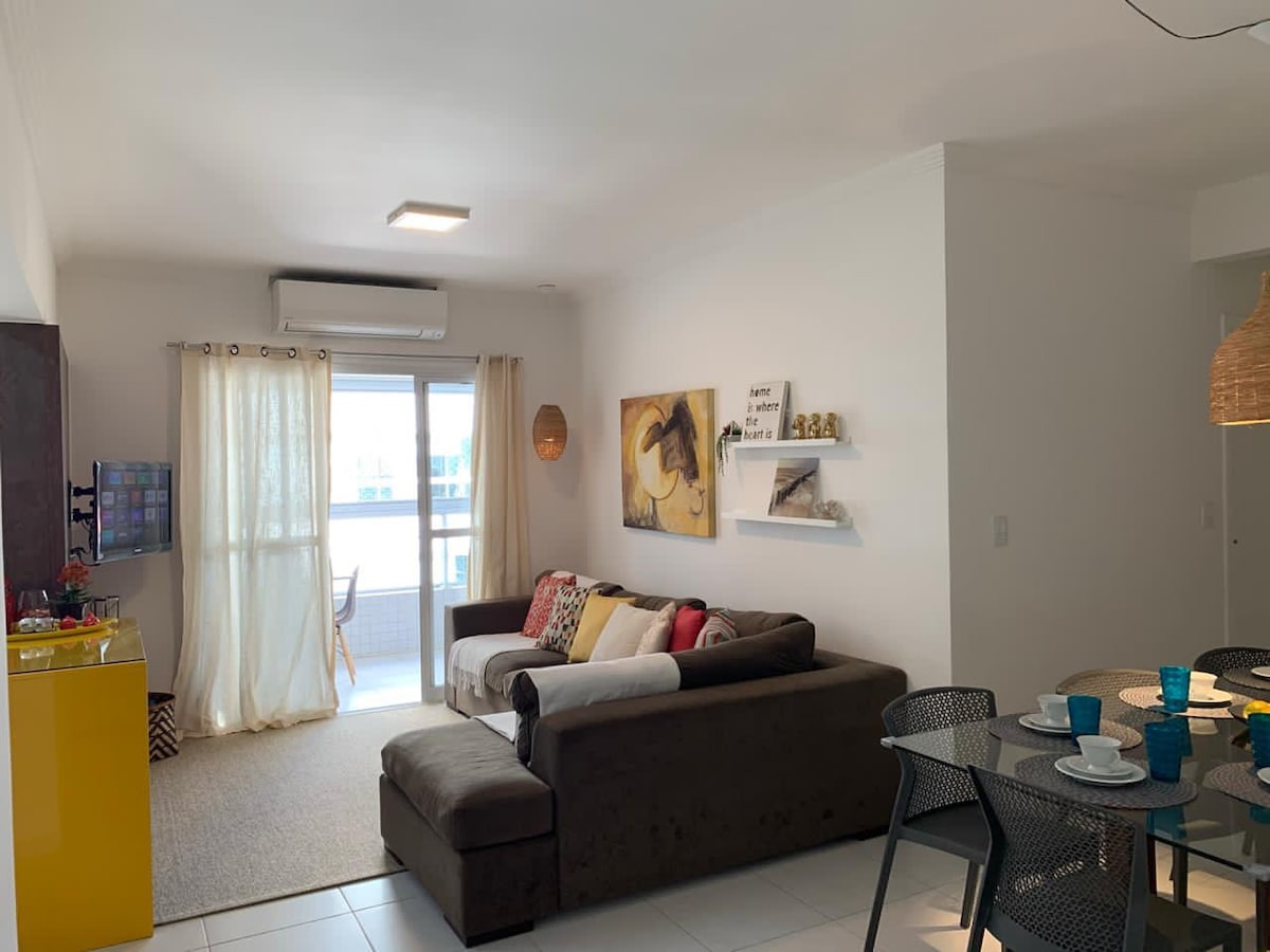 Beachfront apartment, located on Indaiá-Bertioga Beach (4 km from the Riviera) super comfortable and pleasant, with a 270° balcony overlooking the entire Bertioga coast and Serra do Mar, Gourmet Balcony and Barbecue. 3 bedrooms, 1 en-suite, all with air-conditioning 3 TVs, one of which is a Smart TV, with Netflix, Sky and several apps. Wi-Fi, 300 mbps 2 demarcated covered parking spaces COMMON AREA: -Pool -Kids Space - Playground -Cinema -Sauna -Fitness center -Social hall with gourmet space - Reading area