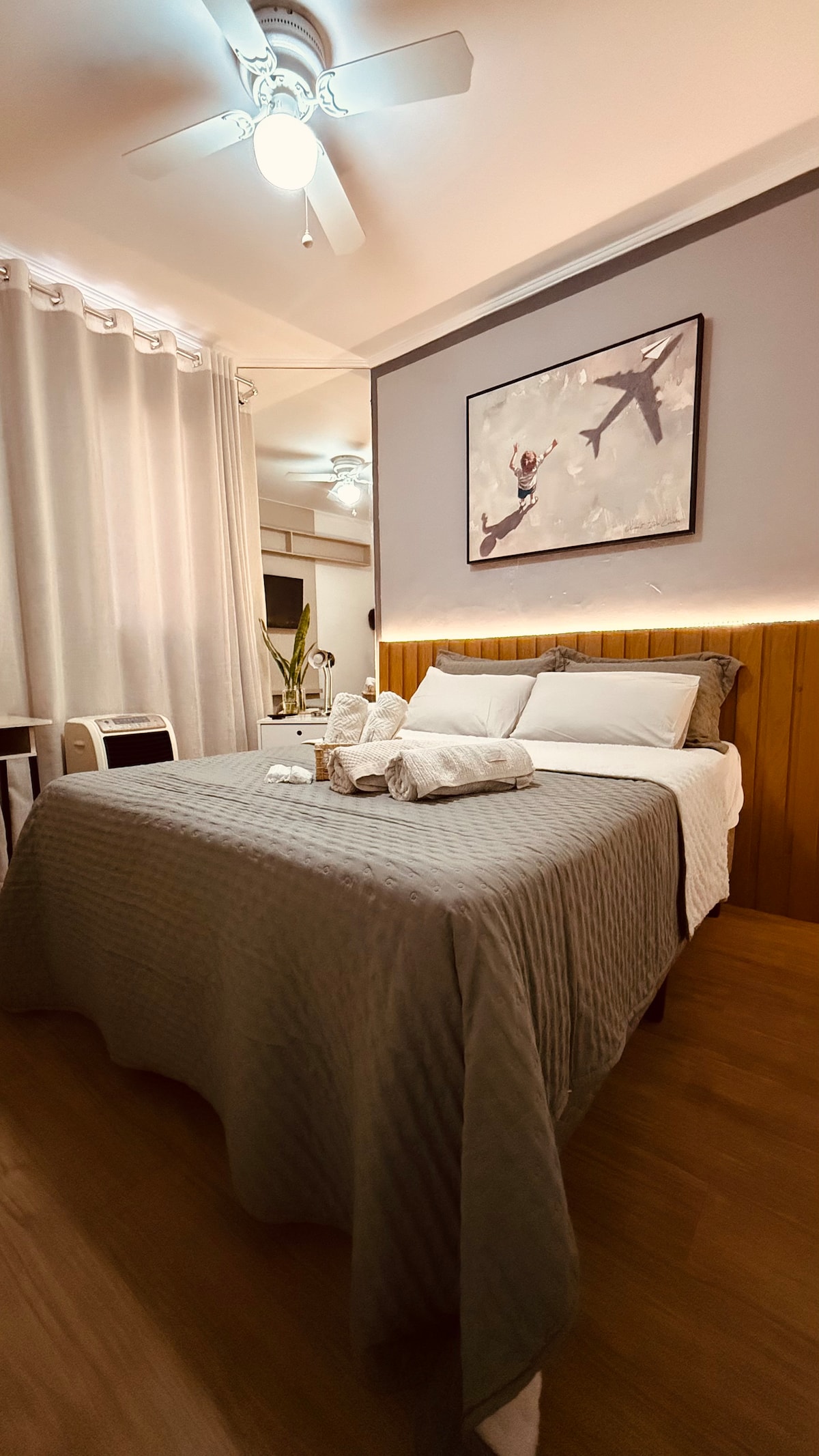 Unit 2. Relax in this fully equipped, quiet, clean and stylish space. Modern, comfortable, equipped, functional and with a great location. It has a comfortable double bed, special shower, air conditioning, equipped kitchen, microwave, Smart TV, Wi-Fi, armchair, office, bathroom and laundry with exclusive washer and dryer. It provides bed and bath linens. Shared access through the corridor. Indaiatuba is close to Viracopos Airport and has beautiful leisure parks, such as the Ecological Park.