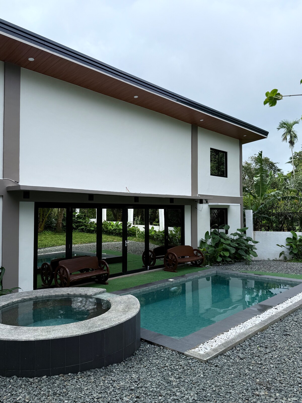 Welcome to Nordic A frame villa ! 🏡 Retreat to the A-frame villa convenientlyNestled at the border of Tagaytay and Silang . Wake up to stunning surroundings, with an IG-worthy garden and elegant interior decor that is sure to impress. Immerse yourself in luxurious amenities like the private pool and jacuzzi, perfect for families and groups. Heated pool and jacuzzi are available with additional fee. Wi-Fi powered by Starlink High-Speed Internet.