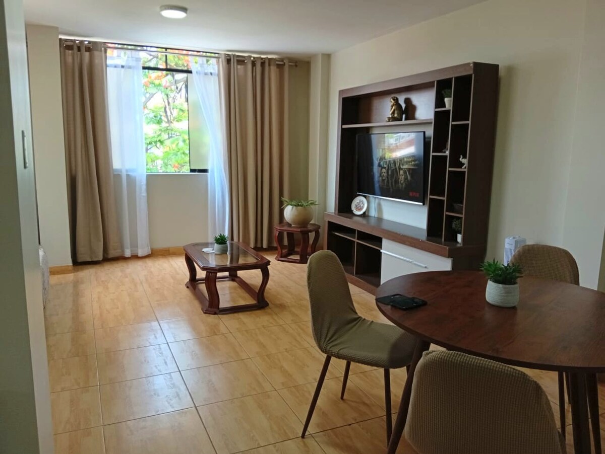 Welcome to a cozy atmosphere. Enjoy a quiet and comfortable place for you and your family. A fully equipped apartment with high-speed optical Internet. Enjoy your favorite movies on a 55" Smart TV, Netflix, Amazon Prime. 20 minutes from the airport, 25 minutes from downtown Lima. Close to main avenues (50 meters), 10 minutes from shopping centers such as Megaplaza, Plazanorte, bus terminal from where they leave to different parts of the country.
