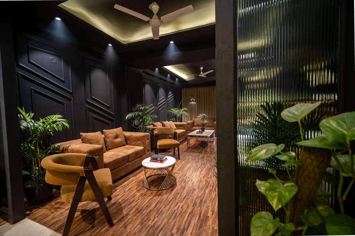 Bring your family or group of friends to this beautifully designed space that blends comfort, style, and a prime location in the heart of Gurgaon. Whether you're in town for work or a weekend getaway, this cozy home offers everything you need - spacious bedrooms with plush beds, built-in wardrobes, and clean, private bathrooms for a relaxing stay. The open-concept entryway creates the perfect setting to enjoy quality time, play games, share meals, or simply unwind together — just like home.