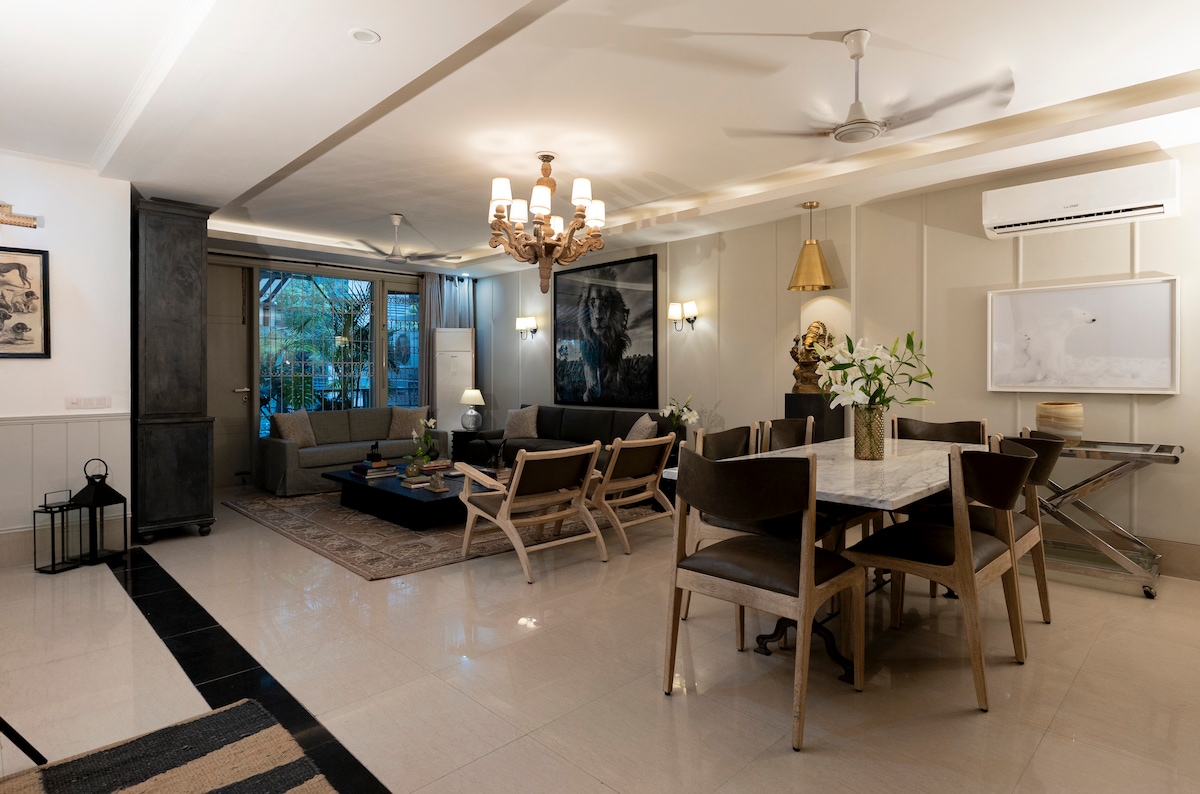 Forget your worries in this spacious and serene space. This corner situated Bungalow offers a great place for a Peaceful and Stress-Free Stay. White-themed rooms with a specious common area offers lawn on both front and side with a free parking space within the premises. Well connected with Road and Public Transport with quick accessibility to Metro Station and all premium places nearby. Welcome to the Nest Of Peace and Tranquility...!