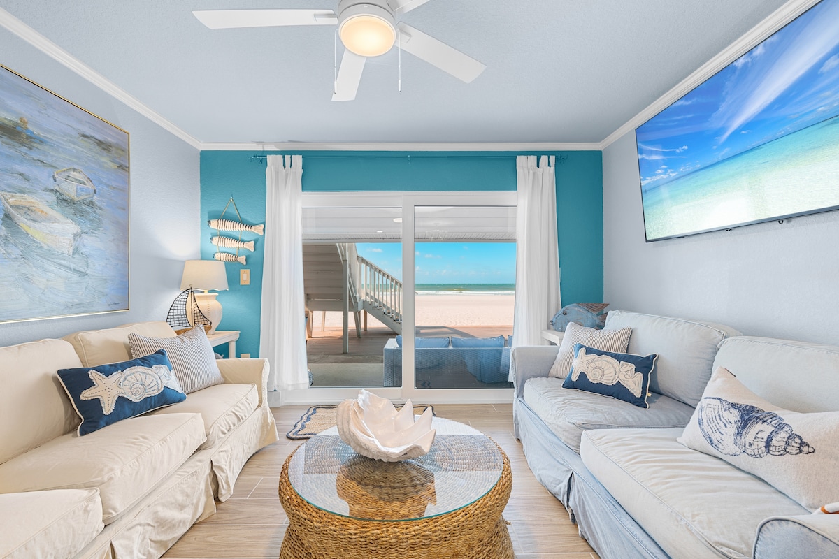 A freshly remodeled beachfront condo with a coastal look. This stunning condo features modern coastal decor, with bright colors, beach-inspired accents, and panoramic views of the ocean. This wonderful condo has a private balcony allowing for the enjoyment of the sea breeze and stunning sunsets. The central location between Clearwater and St. Pete provides easy access to nearby restaurants, shops, and entertainment options, making it the perfect beachfront retreat for relaxation and leisure.