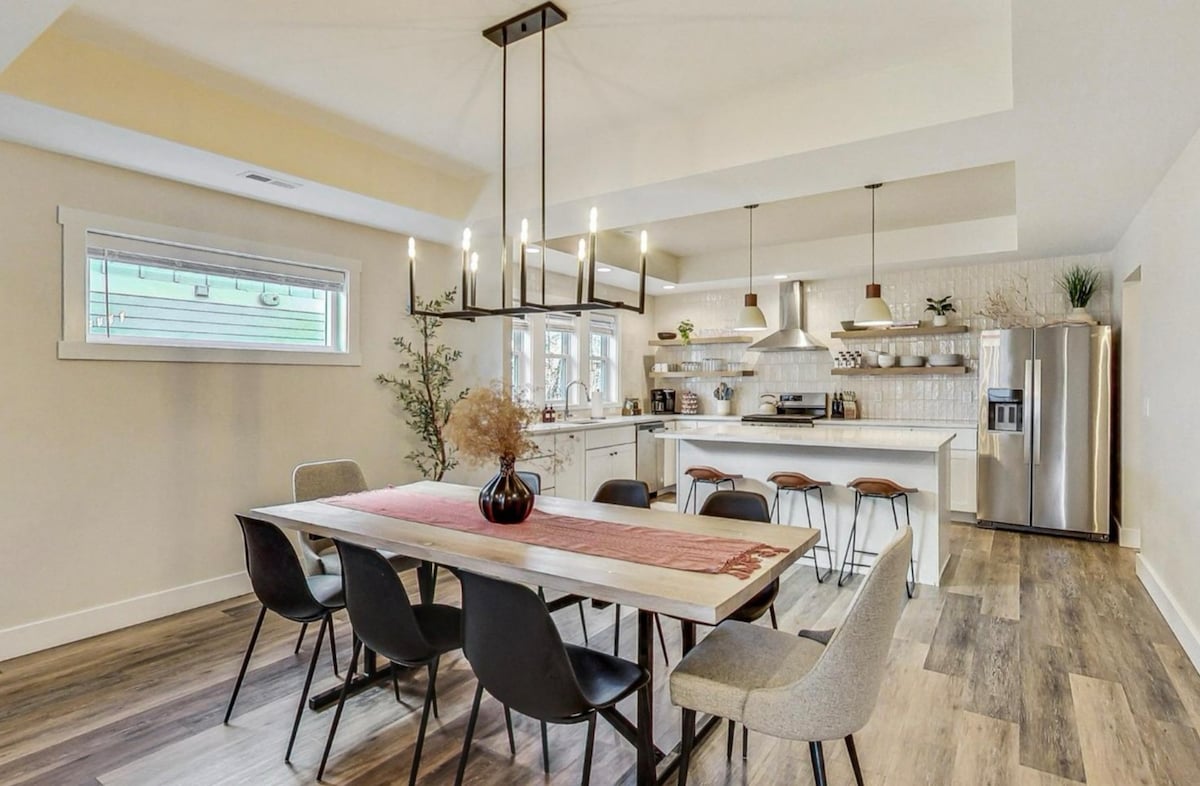 A tribute to our favorite world traveler-he's the first to stay at our properties and give us the good, bad and ugly so we can fine-tune the ultimate experience for YOU. This newly remodeled lake home boasts 4 sleeping areas, year-round hot tub, game room with a ping pong table and large screen TV, large gathering spaces in and out, new kitchen and your own kayaks to explore the area. Enjoy sunsets and lake views from the hot tub on the expansive deck or while grilling on the Weber gas grill.