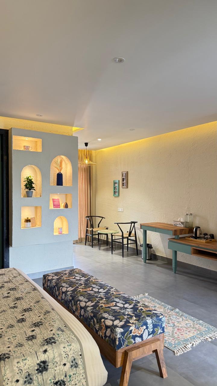 One of the best looking studio apartment in the vicinity. The apartment is situated in one of the most premium buildings of Buch villas at a very prime location. The vibe is very peaceful and comfortable yet stylish. It is at the 2nd Floor also the building has a lift, providing easy access for guests with mobility needs, including those using wheelchairs. An inverter has been installed to ensure a cozy atmosphere and a comfortable stay, along with an Android LCD featuring Netflix access.