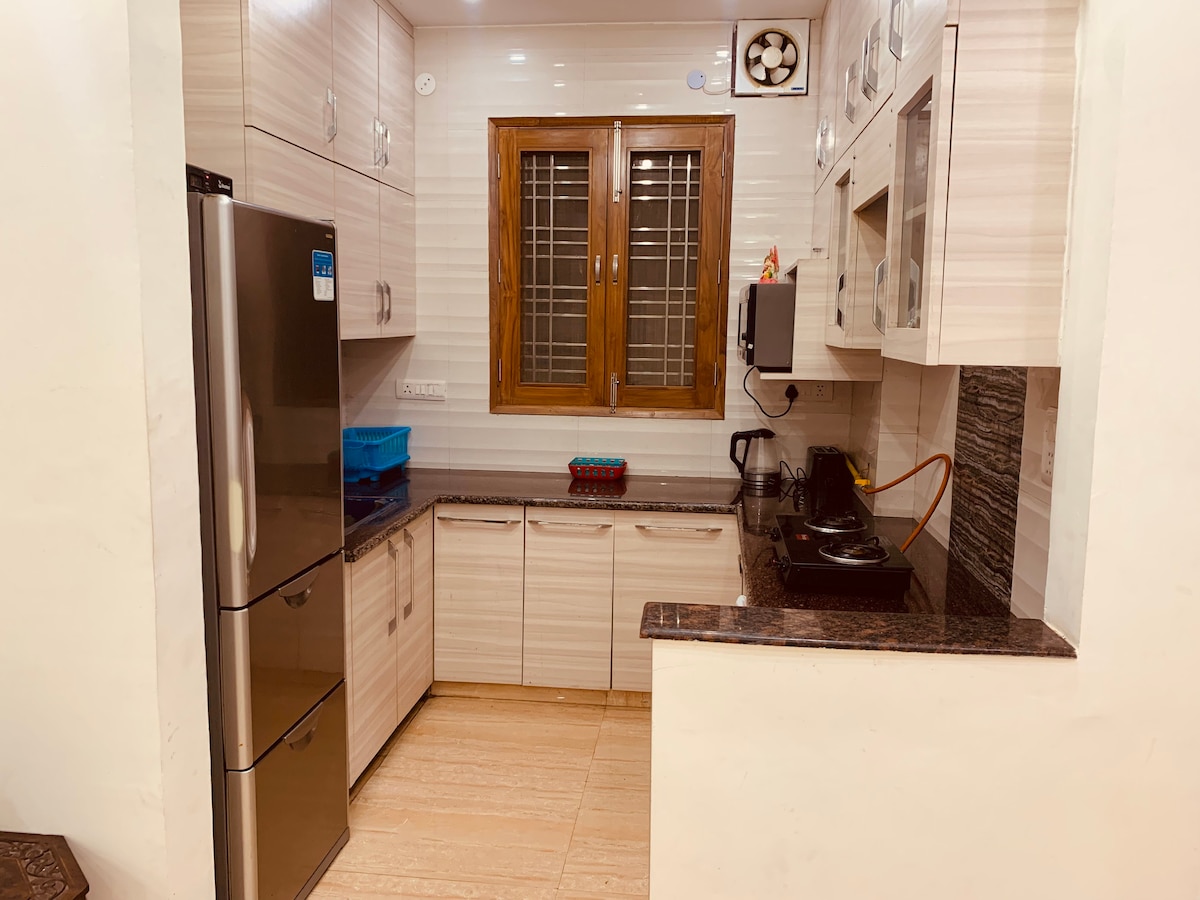Welcome to a thoughtfully designed air-conditioned studio apartment offering comfort, style & privacy in a premium residential society in Indirapuram. With elegant décor, a cozy ambience, a 55” smart TV with all prominent OTT like Netflix, Prime, Hotstar etc subscribed, along with an iron, hair dryer & a functional kitchen, the space is ideal for work trips, short stays, or longer getaways. Quiet, secure, and well connected, this studio promises a comfortable stay you’ll be happy to return to.