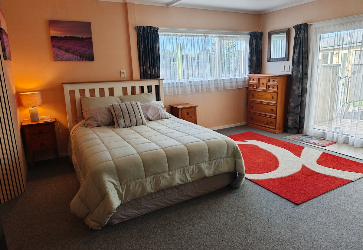 We are situated close to main routes in Taranaki but in a small town only 15 minutes from New Plymouth. WE PROVIDE CONTINENTAL BFREAKFAST; cereal, bread for toast, spreads, butter, milk and tea & coffee,. You will need to have your own transport when staying with us as public transport is almost non-existent with only 2 buses a day. We have offroad parking. There are a lot of activities available to you including walking tracks, surfing, cycling & beautiful parks to explore.