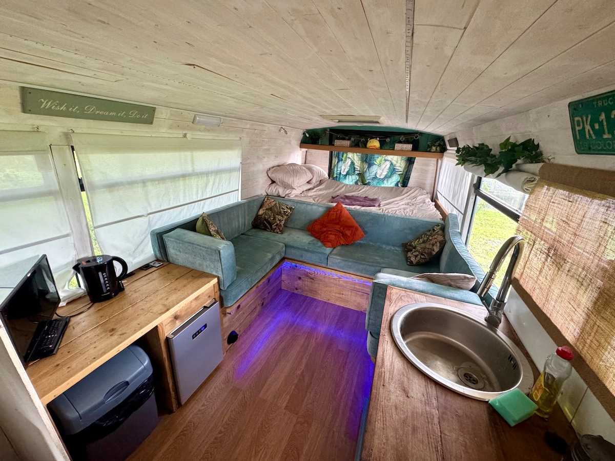 Set in the secluded grounds of a sleepy village chicken farm, this bus offers privacy and plenty of relaxation space under a tree canopy. This camper bus conversion offers a quirky camping experience with farming surroundings with the essentials. There are many eating options and local food shops nearby so you have the options of cooking or taking out. Seaside town of Skegness is only 30mins away.