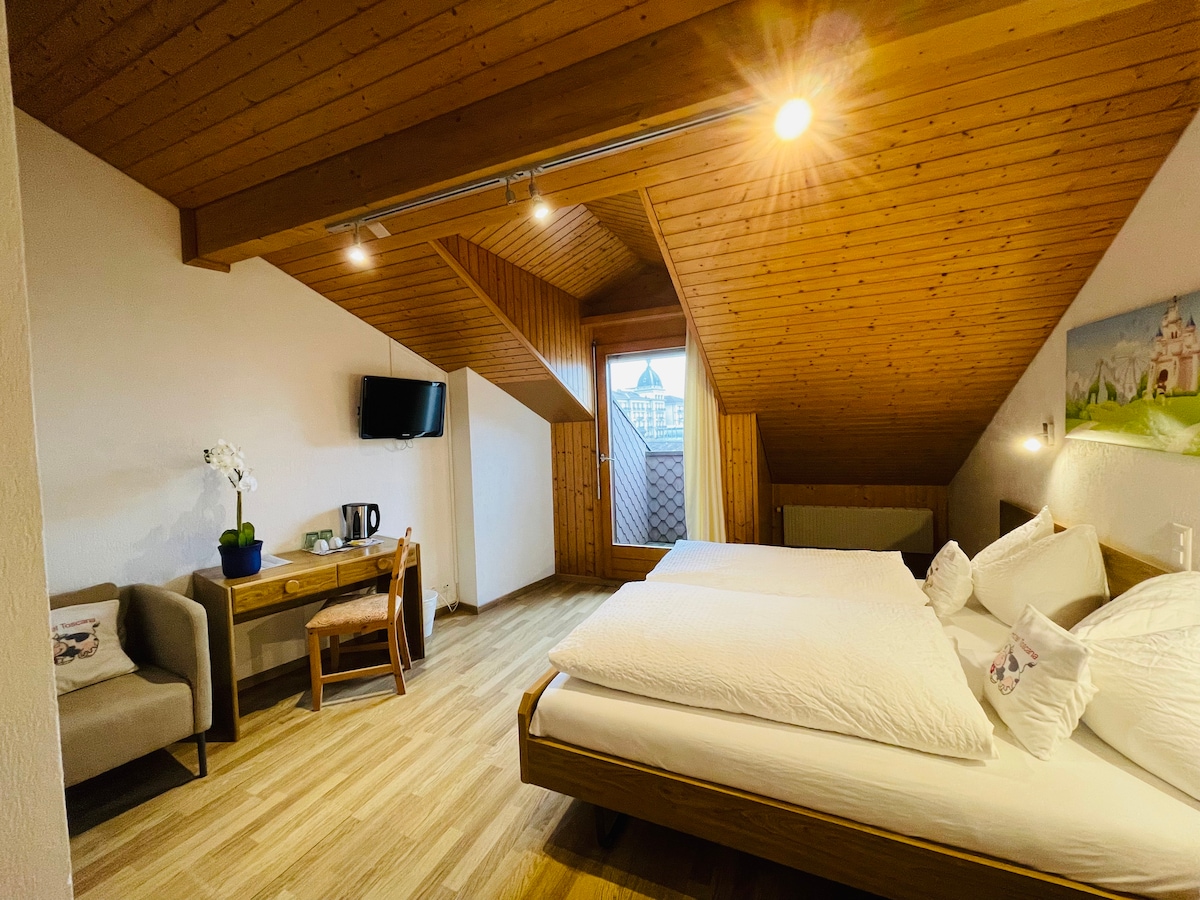 This is our 1 room spacious with blaconey in the Hotel. Our hotel is fresh renovated and perfectly equipped for your stay in Wilderswil, very close by Interlaken, the Jungfrau mountains and the Jungfrau region. It is in the 1st floor of our hotel. It's located close to the center of Wilderswil, just 2 minutes walk from the train station, the supermarket and the bus stops.