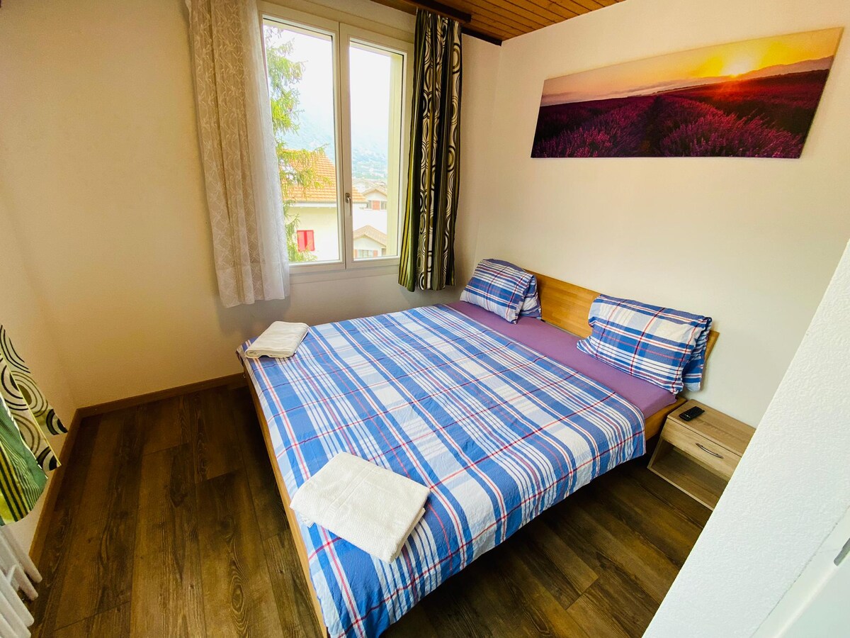 The room is located in the pedestrianized centre of Interlaken next to the famous Hohematte park. Free WiFi is available. A private bathroom and come with a flat-screen TV, as well as tea-making facilities. Free toiletries are provided. Boutiques, banks, and the casino can be found in the immediate vicinity. The West and East train stations and the port can be reached on foot within 5 to 15 minutes.