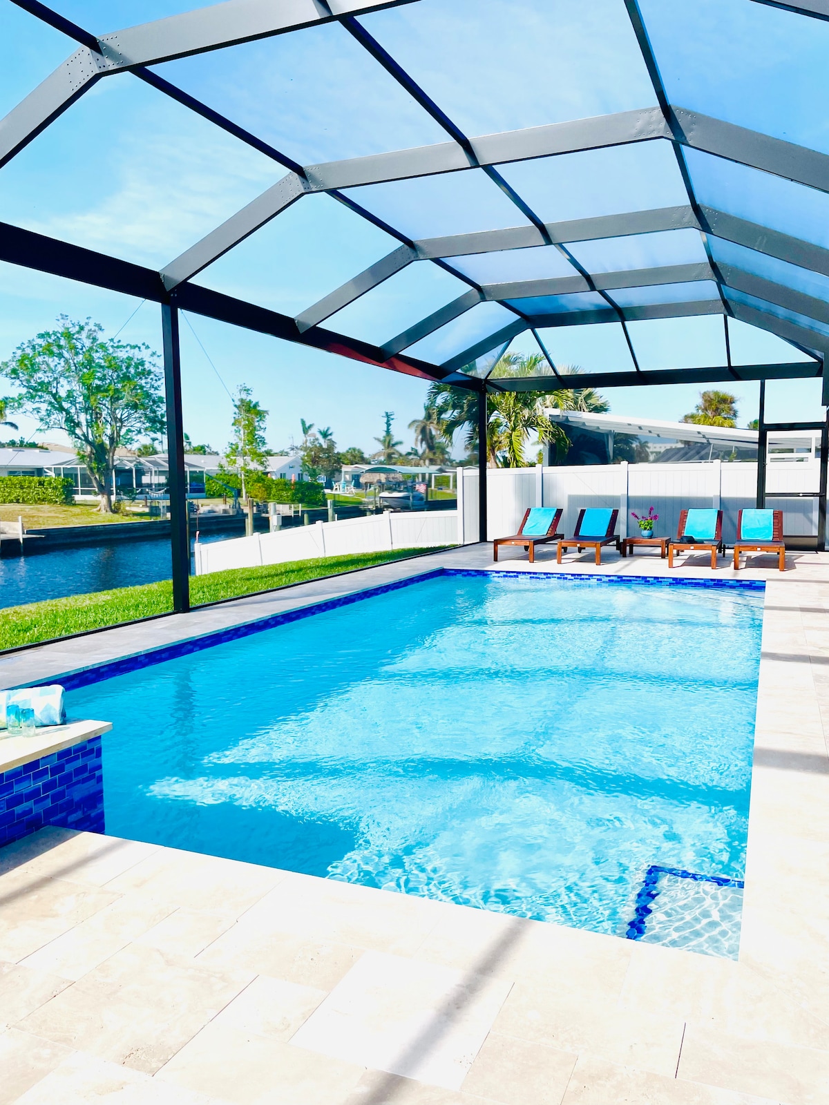 Enjoy the best of the Cape Coral Yacht Club neighborhood. We offer beautifully restored Terrazzo floors along with all new cabinetry, appliances and furniture. The interior of the house has been greatly improved since Hurricane Ian. The lanai, pool and waterfront offer you serene splendor and beauty that you will not want to leave. We provide the most convenient location in Cape Coral, just one mile from the downtown restaurant district.