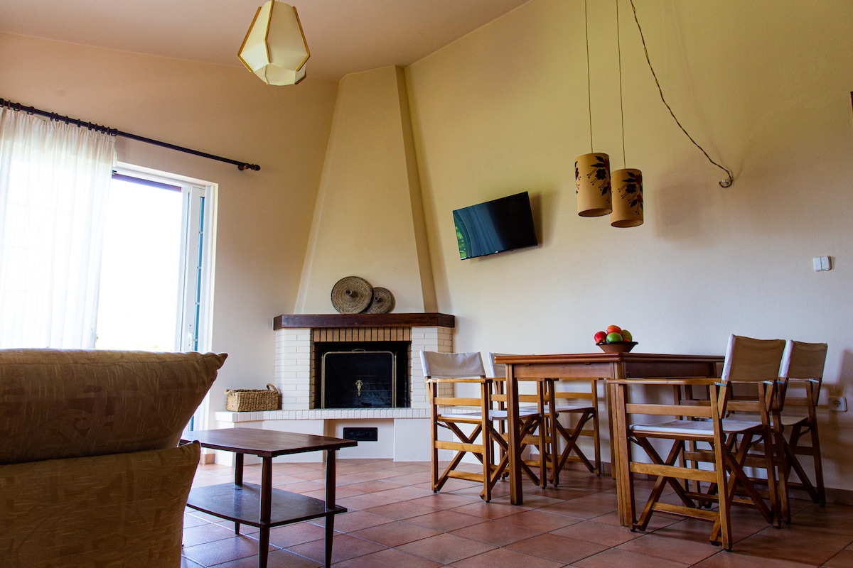 Discover a Mediterranean themed escape at this rustic designed modern home. The holiday retreat features wood furnishings and decor, blue hues throughout, contrasting motifs, and access to a communal garden with a BBQ. Just at the outskirts of the pretty hamlet of Svoronata, with views of Zante, the Ionian Sea and surrounding countryside, this charming, 50 sqm, 1st-floor residence, enjoys a tranquil location, very close to the airport, but quiet and perfect for a relaxing, romantic holiday for two or three. Sitting in an elevated position, it dominates splendid views from its' spacious terrace The private terrace of 45 sqm, located just in front of the apartment and the lovely garden underneath, with its' barbeque, create a wonderful setting for breakfast, coffee or meals. Although it is built in the common garden of the hosts’ permanent residence at the ground floor, it stands at the whole 1st floor itself, which is autonomous and shields guests from the house beneath it and there are no immediate neighbors overlooking the property. Patio doors allow plenty of light to flood into the open plan lounge with a sofa-double bed, dining and kitchen area. The comfortable double bedroom, with a king size bed, also has patio doors out to the furnished terrace at the front of the property. A bathroom is located two steps across the bedroom door, together with a kitchen with all the necessary utensils. The lovely garden at the ground floor and the barbeque are in common use with the hosts. The terrace of the 1st floor is private, for guests' use only. The hosts are everyday willing to help you spend unforgettable holidays. Their permanent residence is located at the ground floor. They moved to the island of Kefalonia in 2006. George is an Electrical Engineer. He likes the countryside, windsurfing, sailing and tennis. Sofia is working. She likes cooking, paragliding, excursions and traveling. They have two children. The house is 8 kilometers away from the capital of the island, Argostoli, and only 1 kilometer from the airport and the sea. A short 5-10 minute drive away are several of the island's most famous beaches, Ammes, Avithos, Ai Helis, Makris Gialos and Platis Gialos. They are located two to five kilometers away from this lovely residence. There are also markets, taverns, and shops nearby. A welcome basket of fresh fruits, juice, as well as a bottle of wine, will be offered to the guests upon their arrival.
