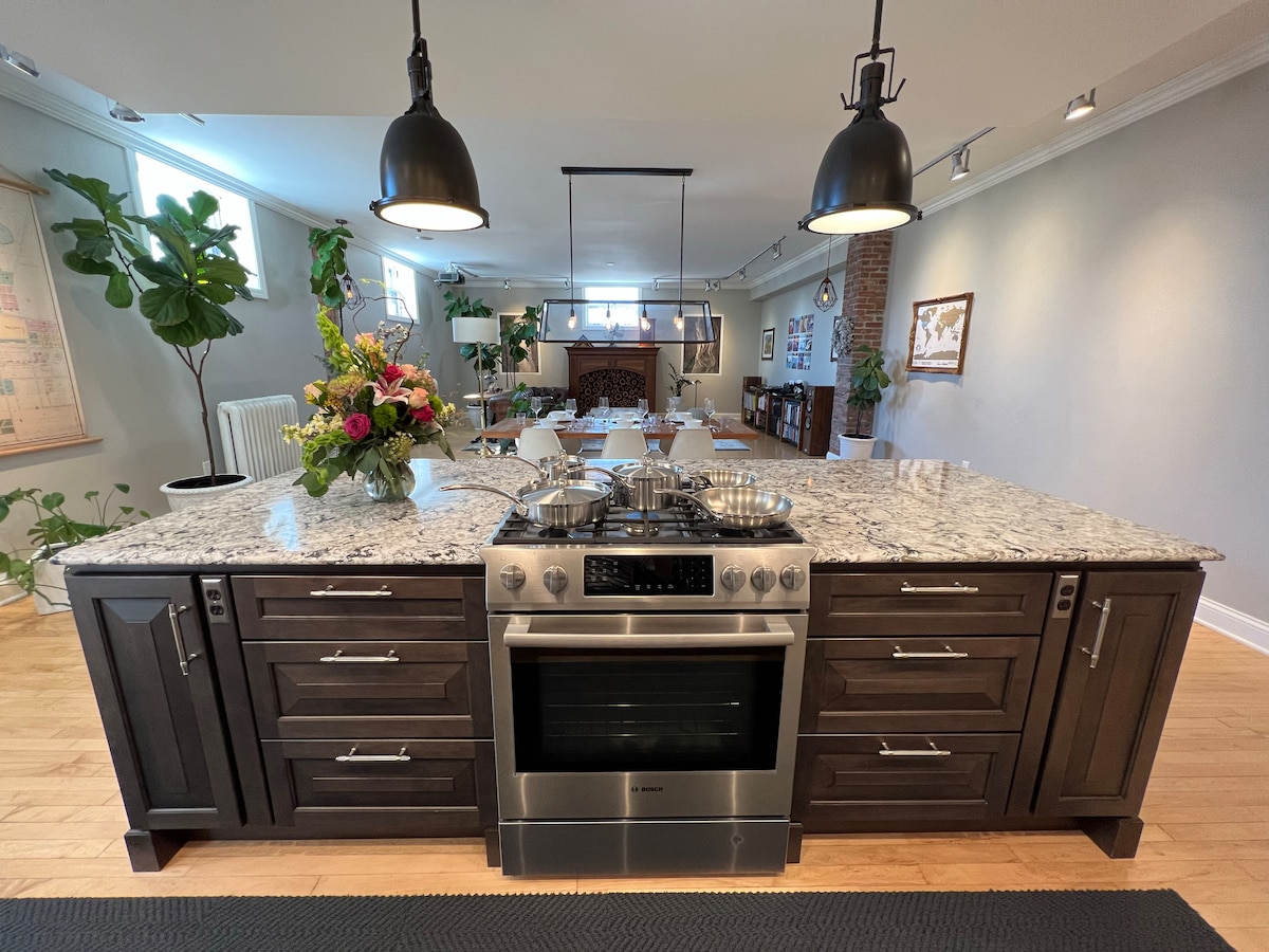 This loft is situated above a small town bustling coffee shop, also overlooking the park in the town square. The space is the perfect combination of old historic charm with a modern urban flair with plenty of natural sunlight streaming through the front windows. The kitchen flows seamlessly into the living room where there are multiple seating options. The bedroom and living room have smart TVs if you want to use your own streaming site. The spa inspired bathroom has numerous amenities included.